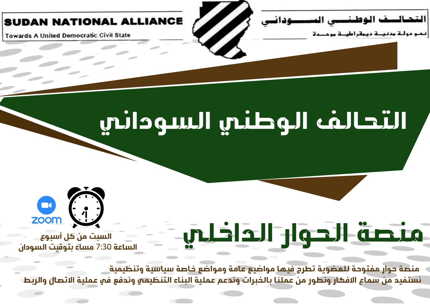 نوجه كل اعضاء وعضوات حزبنا من مقاتلي ومقاتلات حزب التحالف الوطني السوداني وكل جماهير الشعب السوداني في الارياف والمدن للخروج في المواكب والمليونيات السلمية في ٣٠ يونيو
